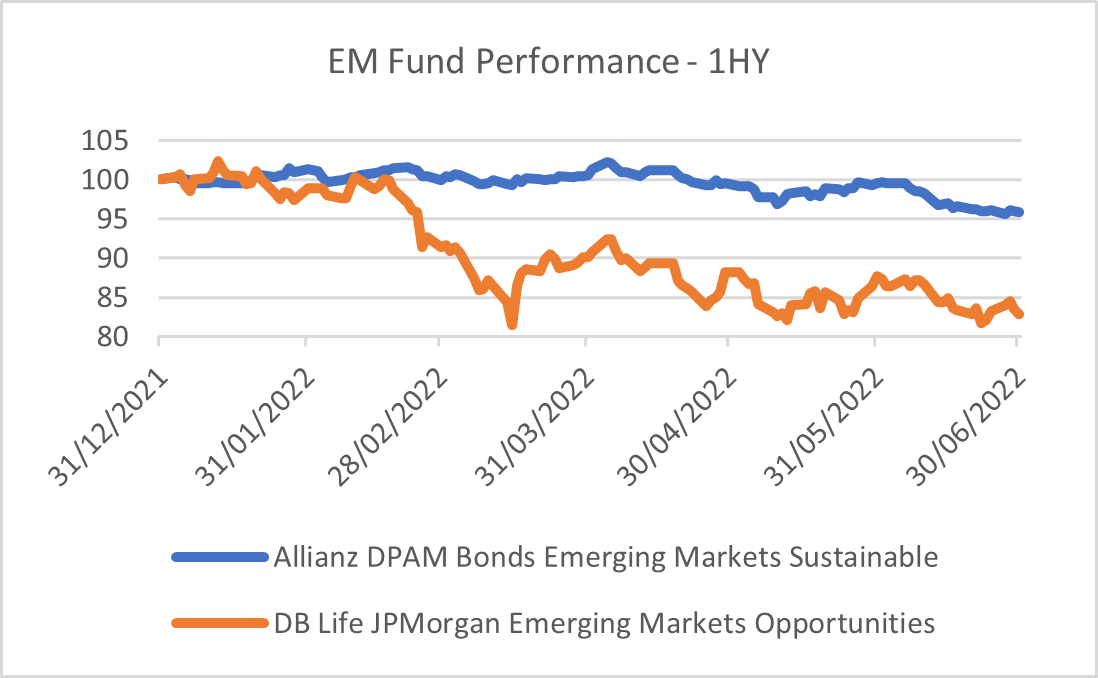 Entre le début du second semestre et le 30 août 2022, le rendement de DPAM Bond EM Sustainable Fund a augmenté de 5,02%, tandis que celui de JPMorgan EM Opportunities Fund a augmenté de 3,62%.  Malgré les signes positifs du marché, les deux fonds resteront prudents.
