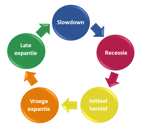 De fase direct volgend op een recessie is een ‘initieel herstel’. Vaak is dit een korte periode van een paar maanden waarin het marktsentiment omslaat van negatief naar positief en de markt weer vertrouwen krijgt in de toekomst. Stimulerende maatregelen worden vaak aangewend in zo’n periode, denk maar aan de lage rentes of de opkoopprogramma’s zoals we die kennen vanuit de ECB.