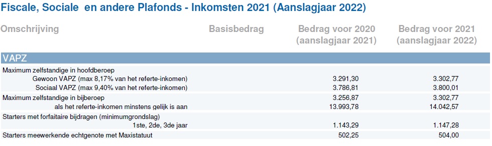 De zelfstandige kan dus de in 2021 betaalde VAPZ-bijdragen fiscaal in aanmerking nemen als: